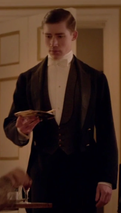 He walks in on Mary and Anna to announce that dinner is ready. Mary scoffs at his method, comparing it to that of Rosamund's butler Mead, who at that time was away.