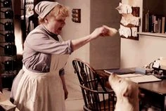 Mrs. Patmore feeding Isis leftover Crepes Suzette