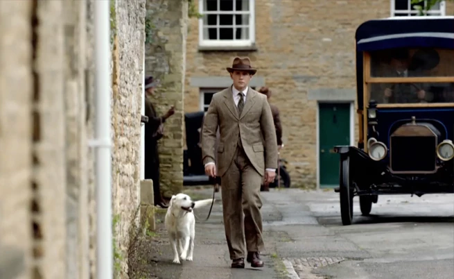 Tom Branson taking Isis on a walk.
