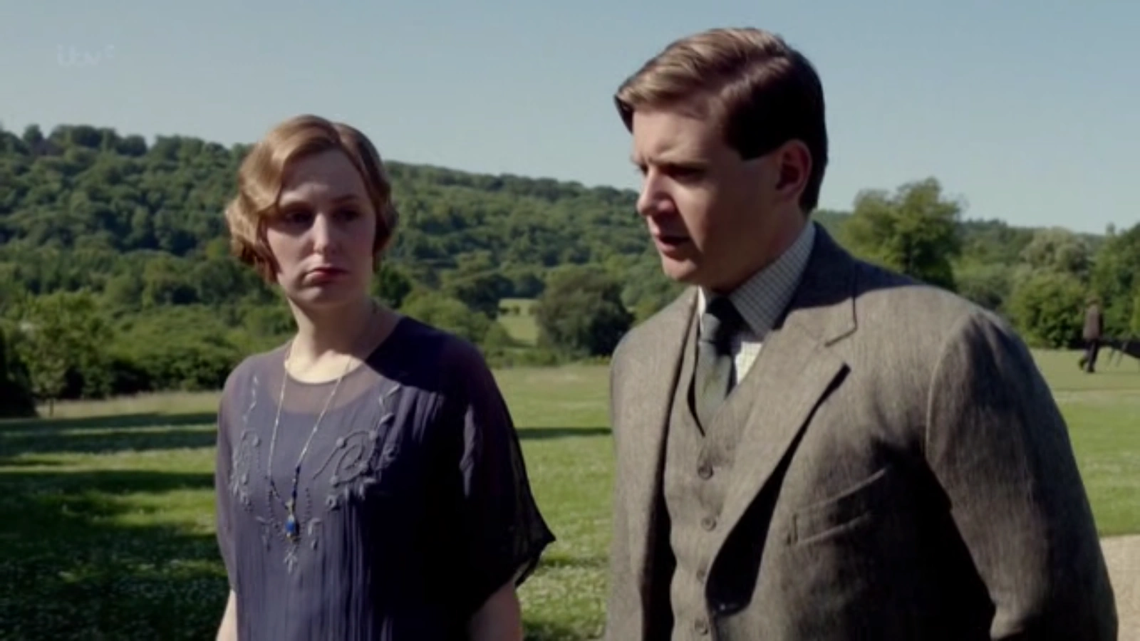 By 1919 Sybil is bored. Bored of her life now that she is back in the same old routine that she was stuck in before the war. The war has changed her irrevocably and she knows it, she cannot and will not return to her mundane existence of waiting around for a suitable bachelor, whom her parents approve of, to stumble her way. But she still doesn’t have an answer for Branson, which disappoints him, but her affections for him are increasingly showing as she reaches up to touch his cheek.